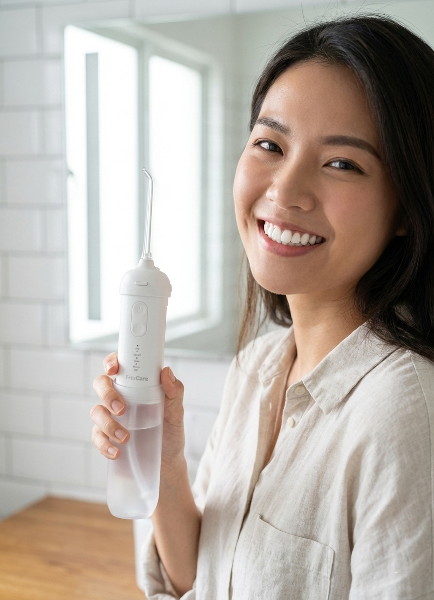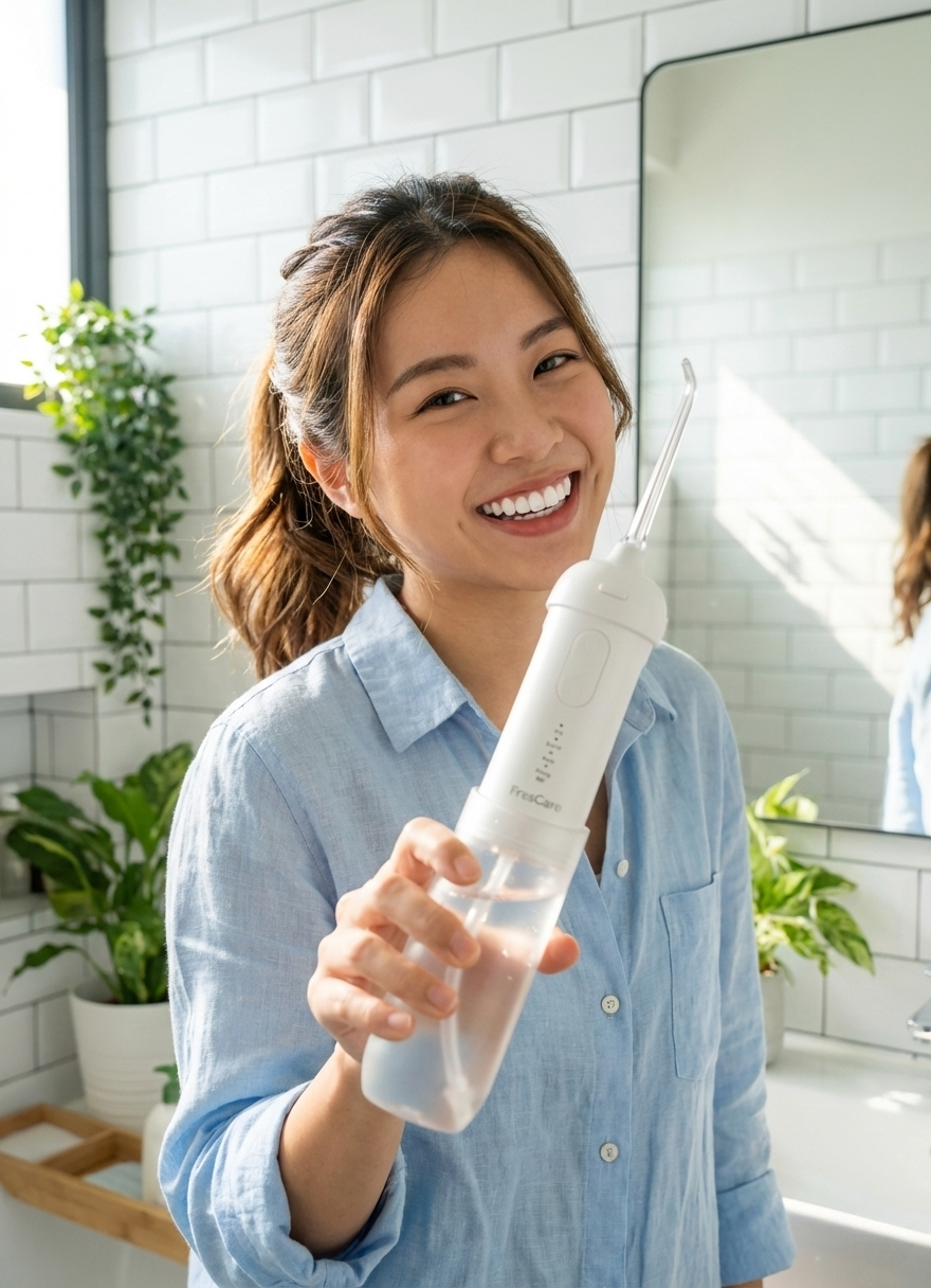 Yes, same principle, smarter execution. Frescare uses a high-pressure water jet to reach tight corners between teeth and deep along the gum line where manual floss often cannot reach. This helps remove odor-causing bacteria, supports gum health, and reduces the risk of gum decay and embarrassing bad breath. Basically, dentist-approved logic with modern convenience.